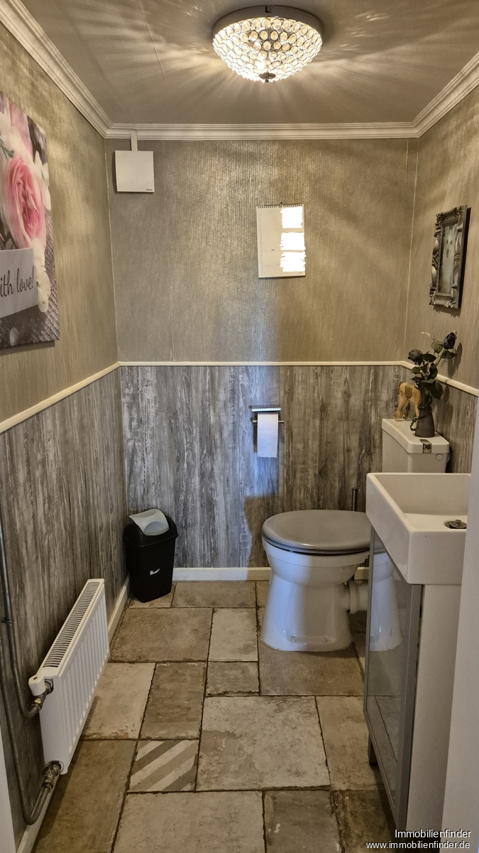 Op de begane grond vind je een onlangs gerenoveerd apart gastentoilet en een nieuw ontworpen badkamer met douche. Een doorloopkamer met aangrenzende slaapkamer biedt flexibele gebruiksmogelijkheden. De open keuken leidt via een doorgang naar de woonkamer met open haard (momenteel buiten gebruik, reparatie nodig) en naar de serre, die uitnodigt om te ontspannen ondanks het ontbreken van een vergunning. De keuken, doorloopkamer en woonkamer zijn voorzien van moderne vloerverwarming. Er is laminaat gelegd in een andere kamer op de begane grond en in de aangrenzende doorgangskamer, terwijl de andere kamers zijn betegeld met tegels van hoge kwaliteit.